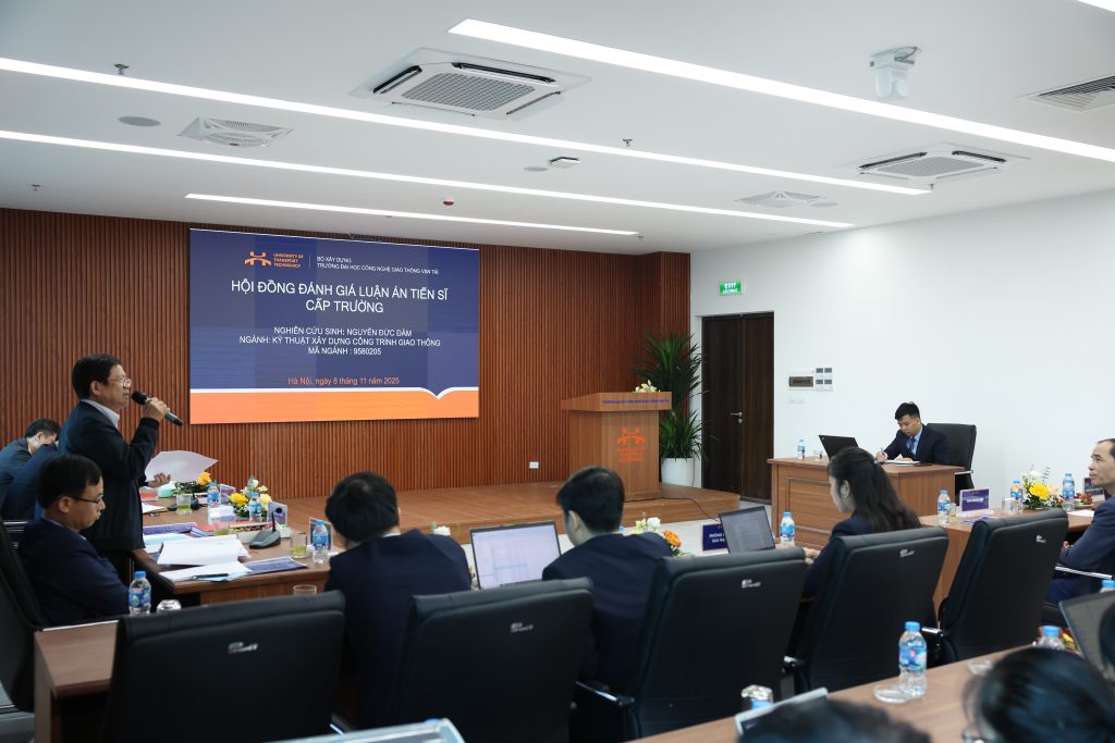 Sáng ngày 8/11/2025, Trường Đại học Công nghệ GTVT đã tổ chức Hội đồng đánh giá luận án tiến sĩ cấp Trường cho NCS. Nguyễn Đức Đảmvới đề tài “Nghiên cứu đánh giá nguy cơ sụt trượt đất đá dọc tuyến đường ô tô xây dựng mới qua vùng đồi núi bằng mô hình trí tuệ nhân tạo và đề xuất giải pháp giảm thiểu”, ngành Kỹ thuật xây dựng công trình giao thông, mã ngành 9580205. Luận án được thực hiện dưới sự hướng dẫn khoa học của PGS. TS. Phạm Thái Bình, PGS. TS. Nguyễn Đức Mạnh.