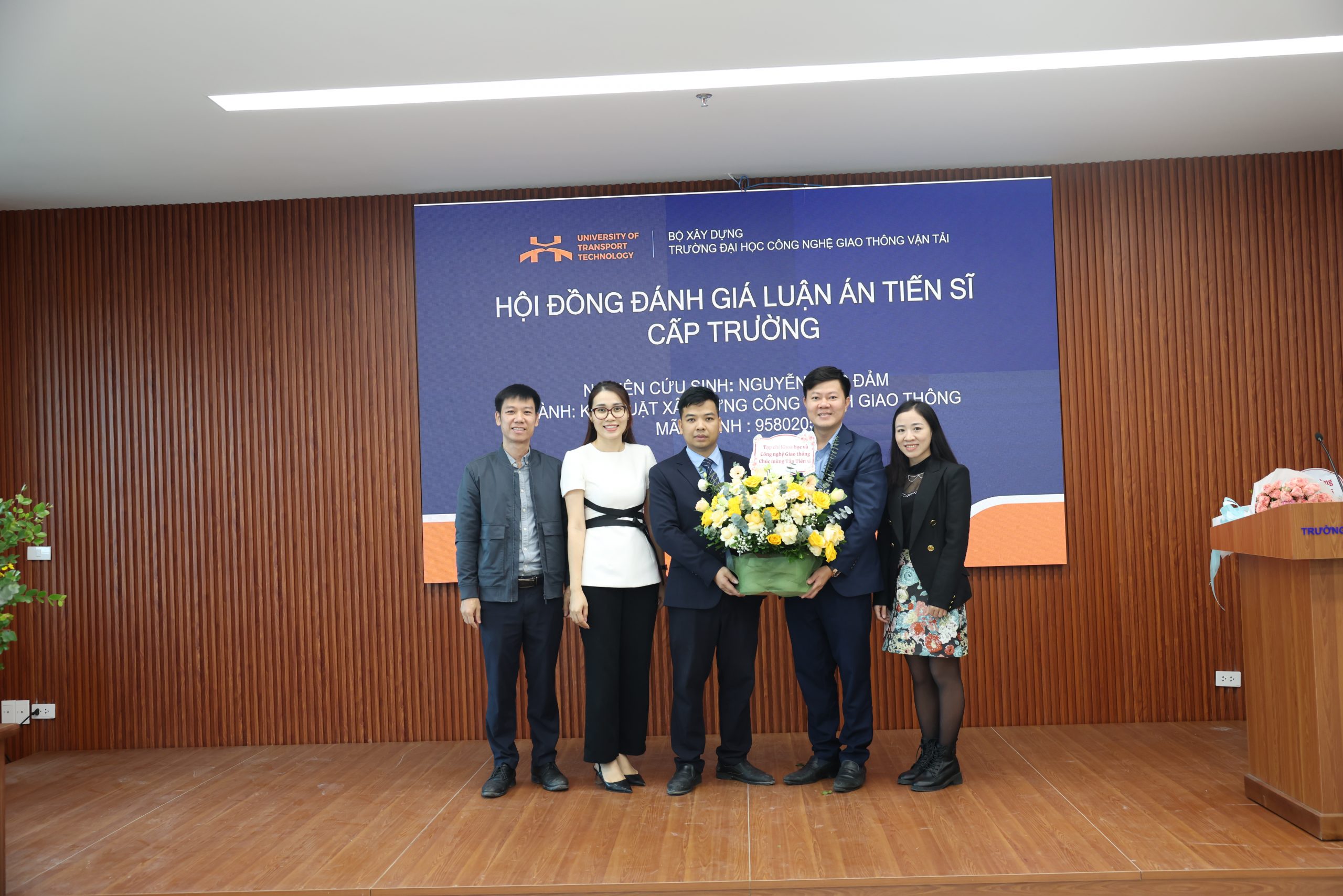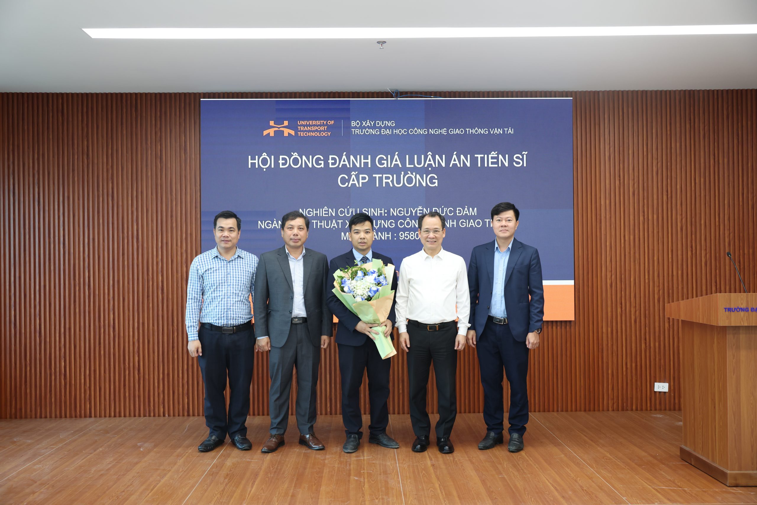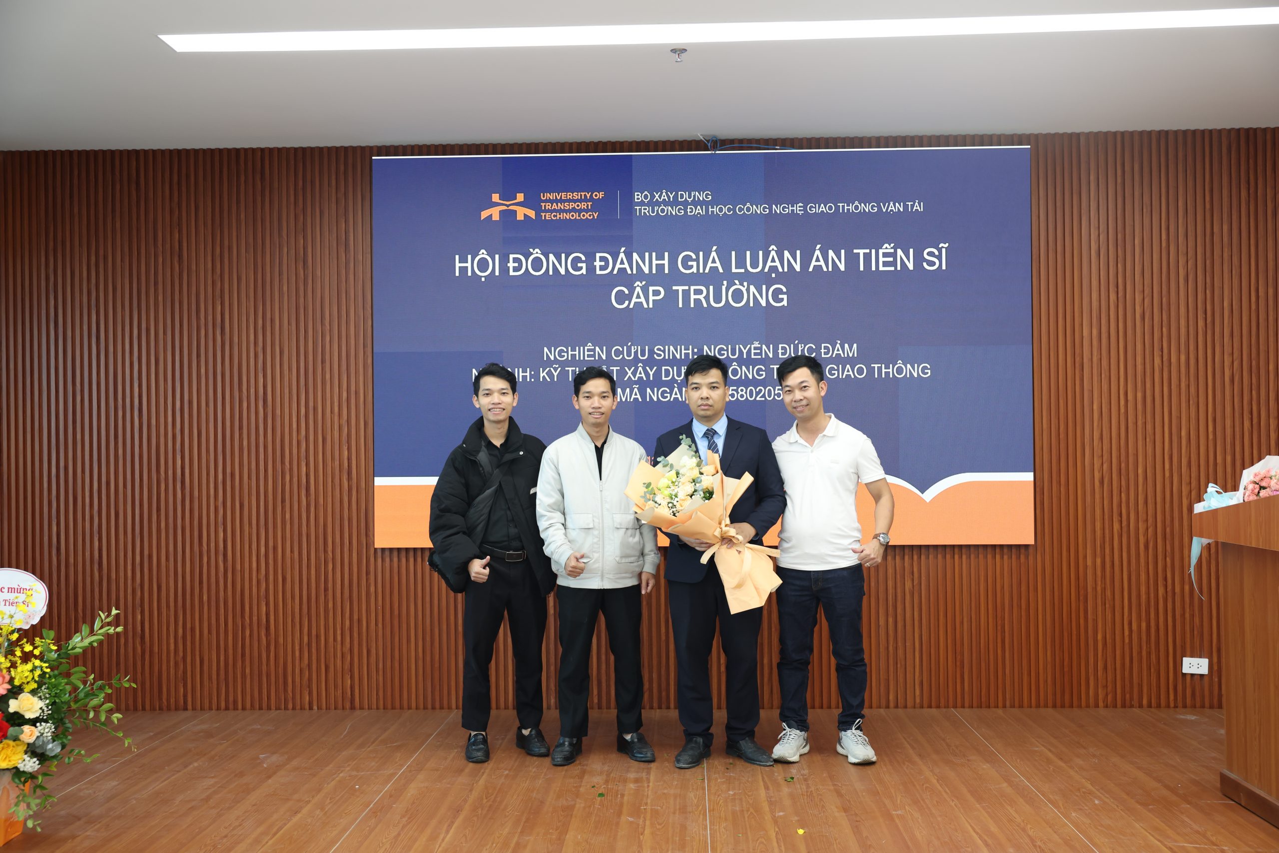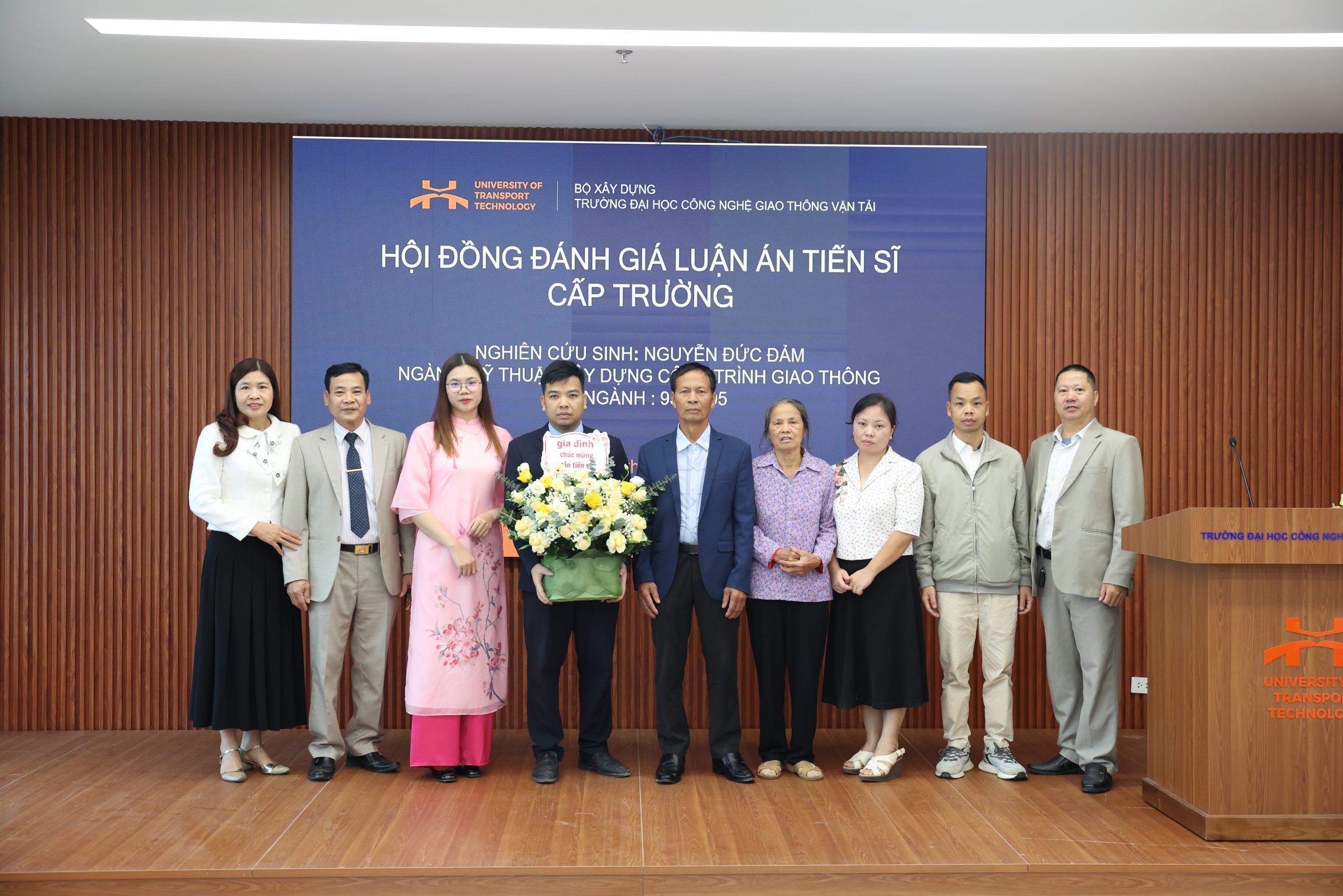 Về phía Nhà trường, có sự hiện diện của PGS.TS. Nguyễn Hoàng Long – Hiệu trưởng Nhà trường, TS. Nguyễn Văn Lâm – Phó Hiệu trưởng Nhà trường, đại diện Phòng Đào tạo Sau đại học, Lãnh đạo Khoa Công trình, NCS Khoa Công trình, Viện Công nghệ GTVT, Khoa Cơ sở Kỹ thuật, cùng giảng viên trong và ngoài Trường, gia đình và bạn bè của NCS đến tham dự và chúc mừng.